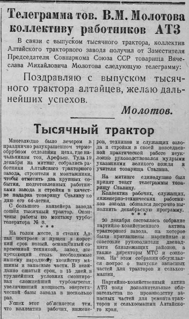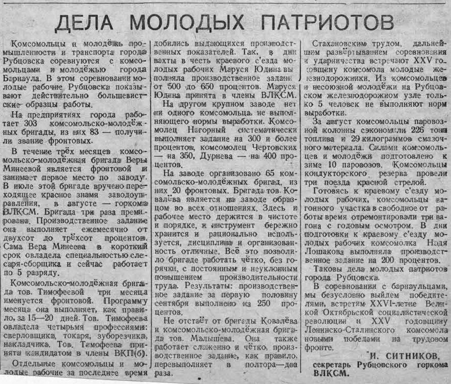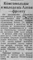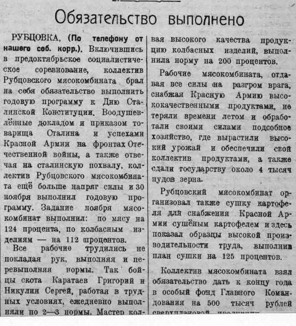 Рубцовск в годы ВОв | Рубцовск-город трудовой доблести | Газеты | Алтайская правда 1943