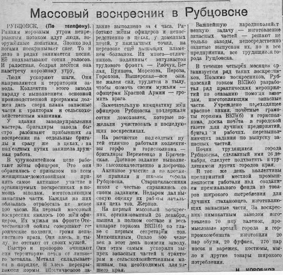 Рубцовск в годы ВОв | Рубцовск-город трудовой доблести | Газеты | Алтайская правда 1943